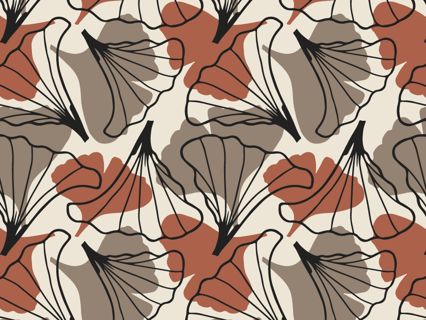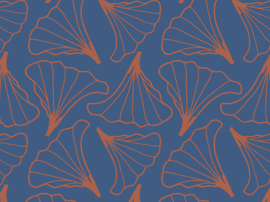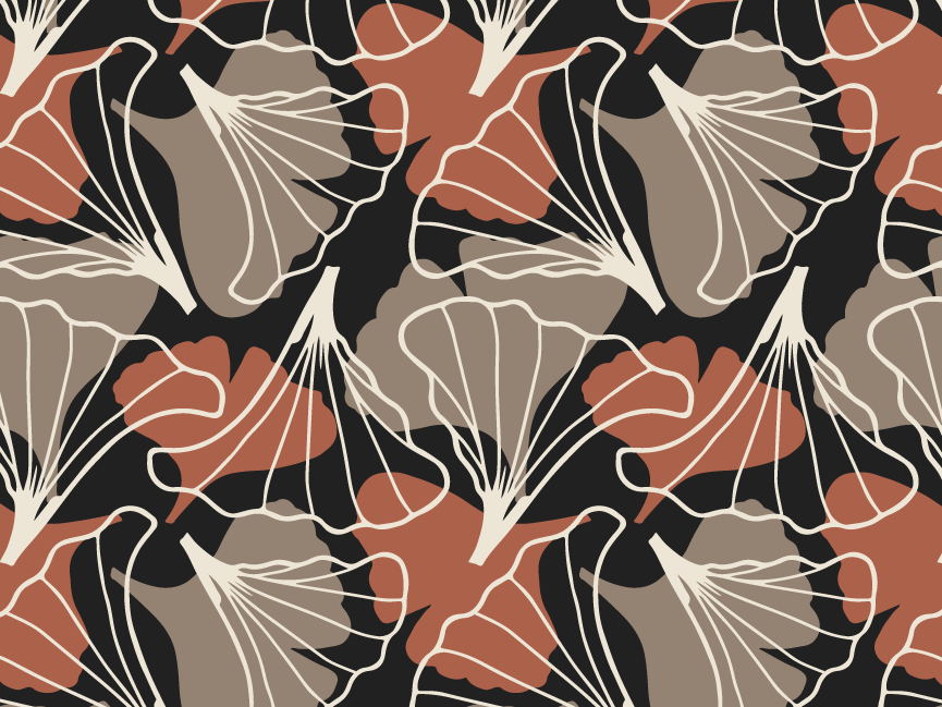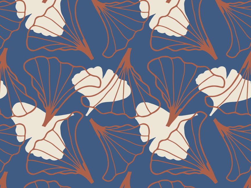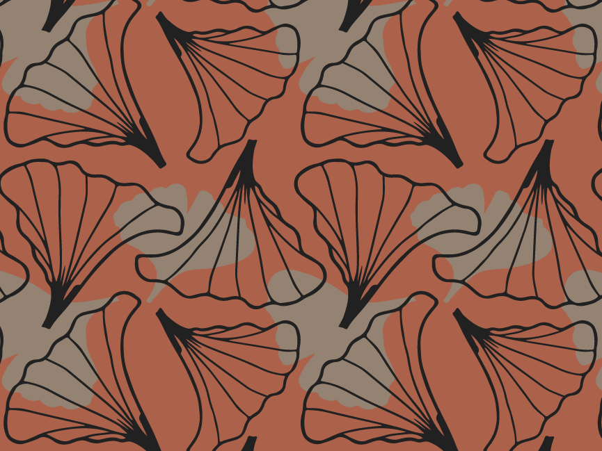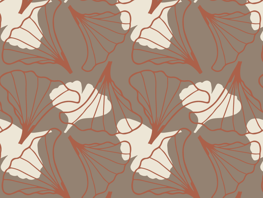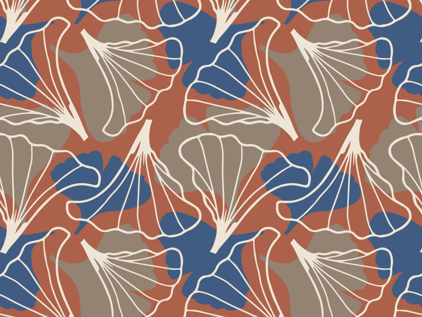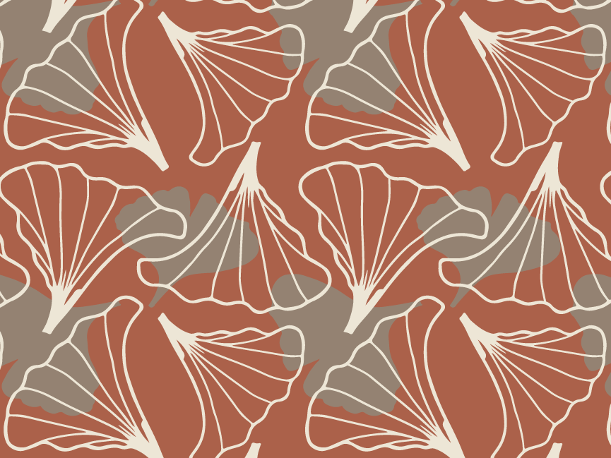A collection of patterns inspired by the the distinctive shape and features of gingko leaves. This is colourway is from the Spoonflower Challenge for East Fork Pottery